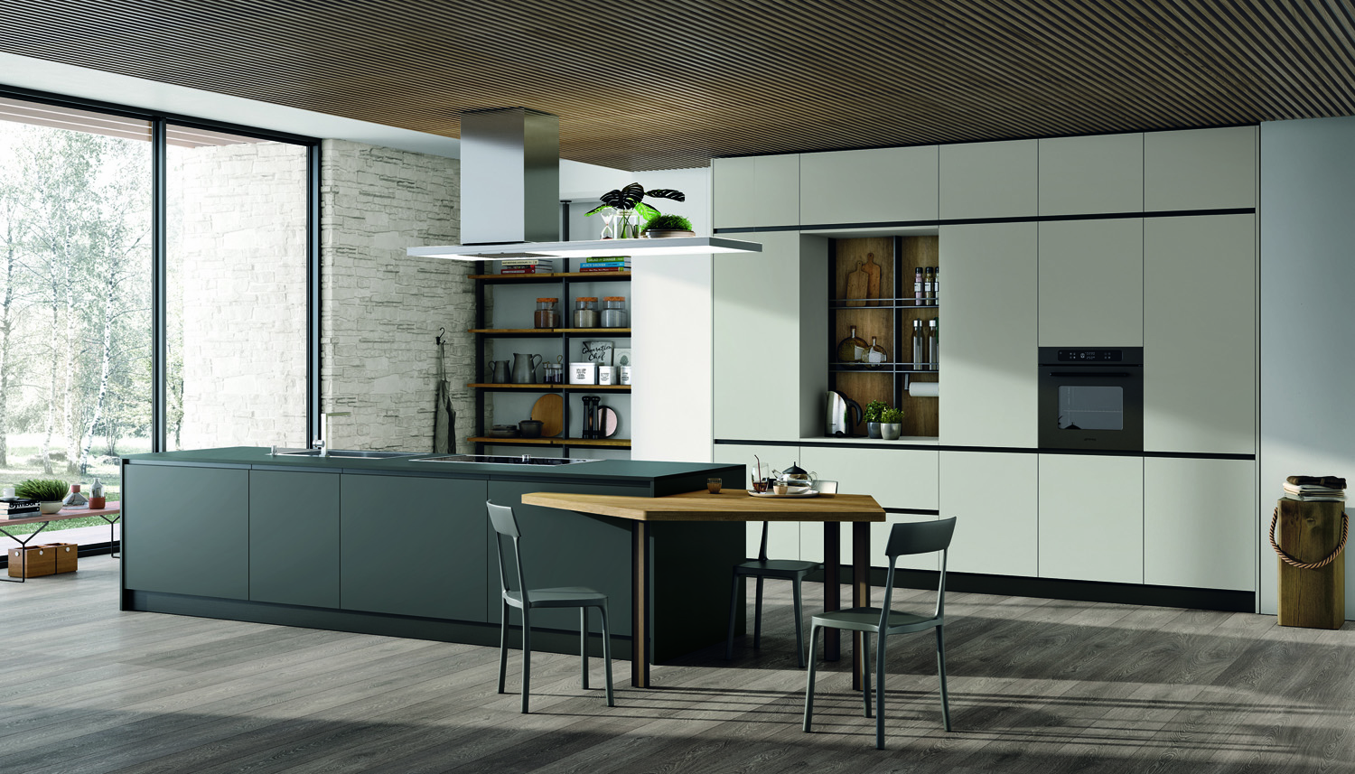 Ανάλαφρη και σύγχρονη, η Alevé είναι η λειτουργική και άνετη κουζίνα, κατάλληλη για τις καθημερινές δραστηριότητες σε συνεχή εξέλιξη. Ένα μοντέλο που ικανοποιεί τις ανάγκες λειτουργικότητας και εργονομίας με μια πινελιά αστικού και πολυτελούς στυλ.