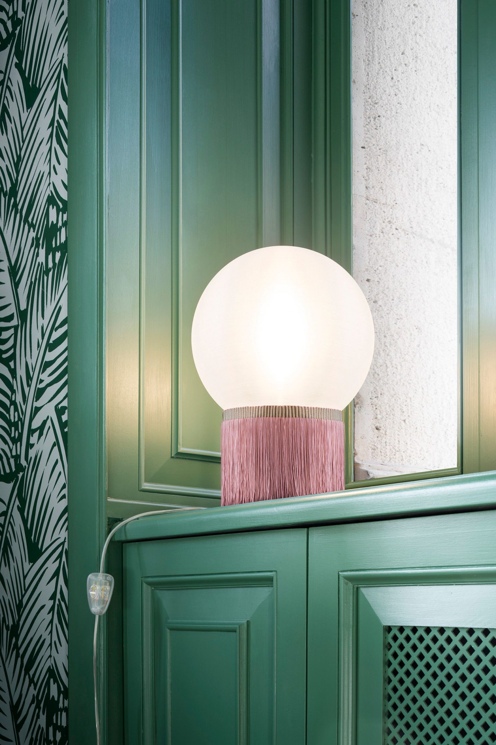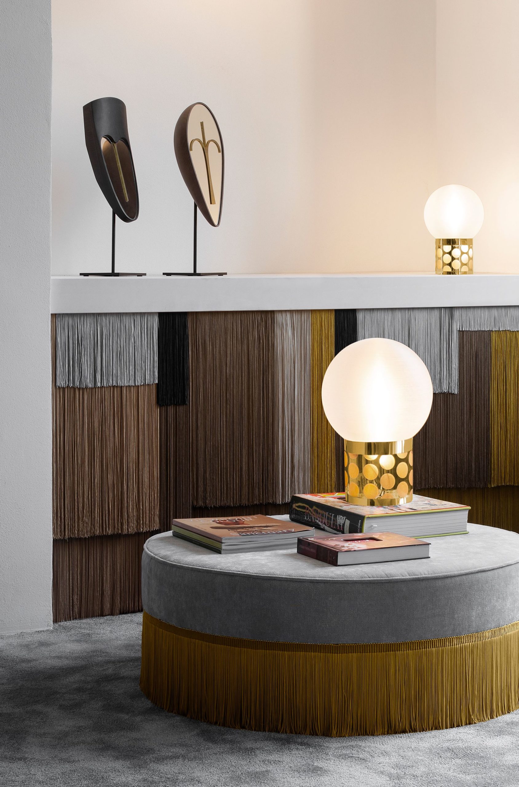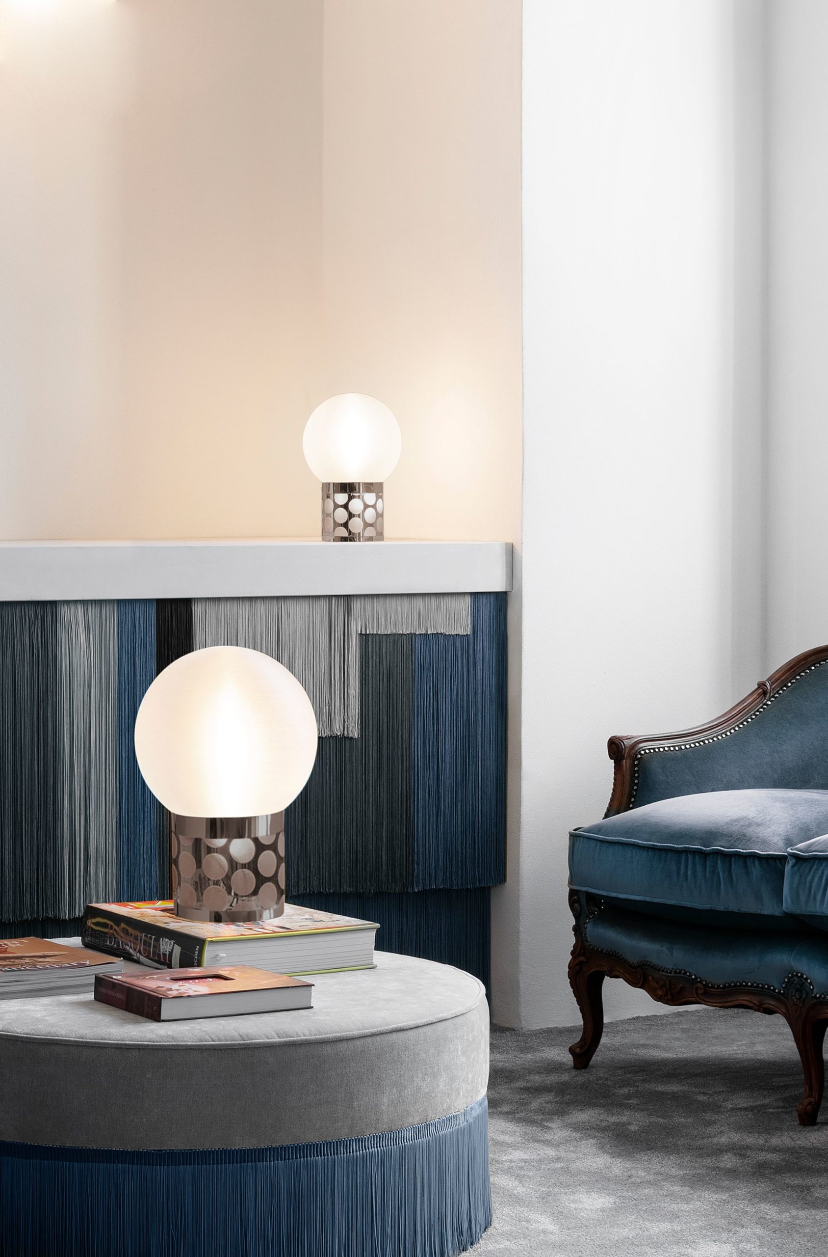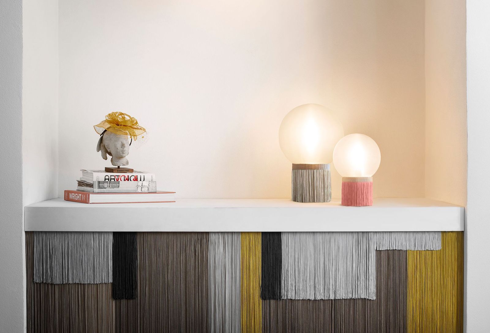 AtmosferaΗ Atmosfera βρίσκεται στην κορυφή της μόδας και του σχεδιασμού, όπου το φως συγχωνεύεται με το ύφασμα. Η νέα συλλογή επιτραπέζιων φωτιστικών διατίθεται σε 2 μεγέθη, με ροζ ή γκρι κροσέ σε στυλ Τσάρλεστον ή μεταλλική έκδοση όπου τα υπέρθετα στρώματα τεχνοπολυμερούς δημιουργούν ένα εφέ polkadot. Τα φωτιστικά έχουν ανεξάρτητους διακόπτες στη σφαίρα και τη βάση, το διακριτικό φως είναι ιδανικό για επιστροφή αργά το βράδυ στο σπίτι. Διατίθεται επίσης σε λάμπα ανάρτησης.