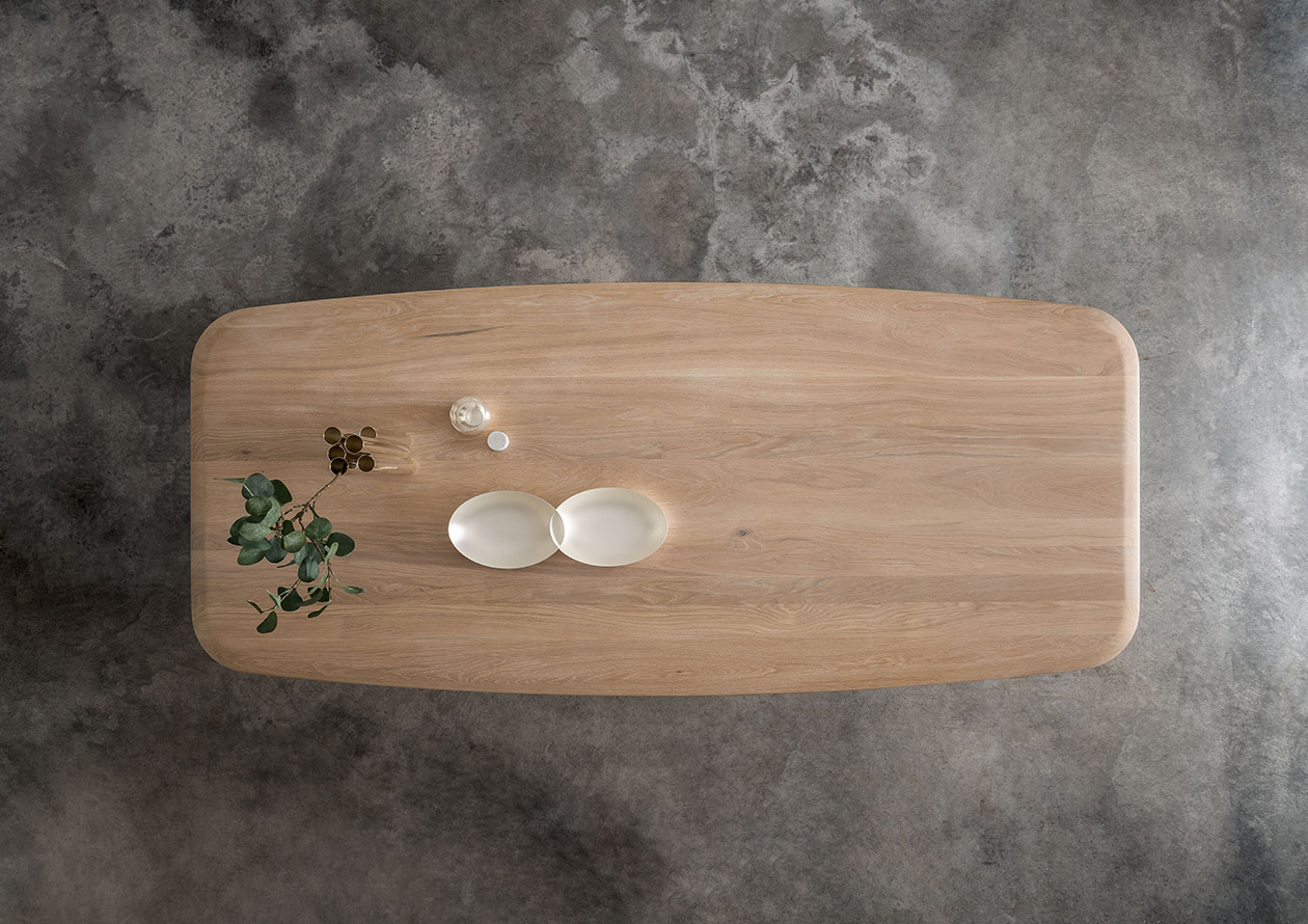 Η επιφάνεια Copenhangen σε δρυς «materico» ξεχωρίζει για το πάχος των 3,5 εκατοστών και για την άκρη σε σχήμα σαπουνιού σε συνδυασμό με ένα στρογγυλεμένο σχήμα που το καθιστούν μοναδικό. Για αυτό το είδος κατασκευής, κάθε επιφάνεια είναι διαφορετική και αποκλειστική.