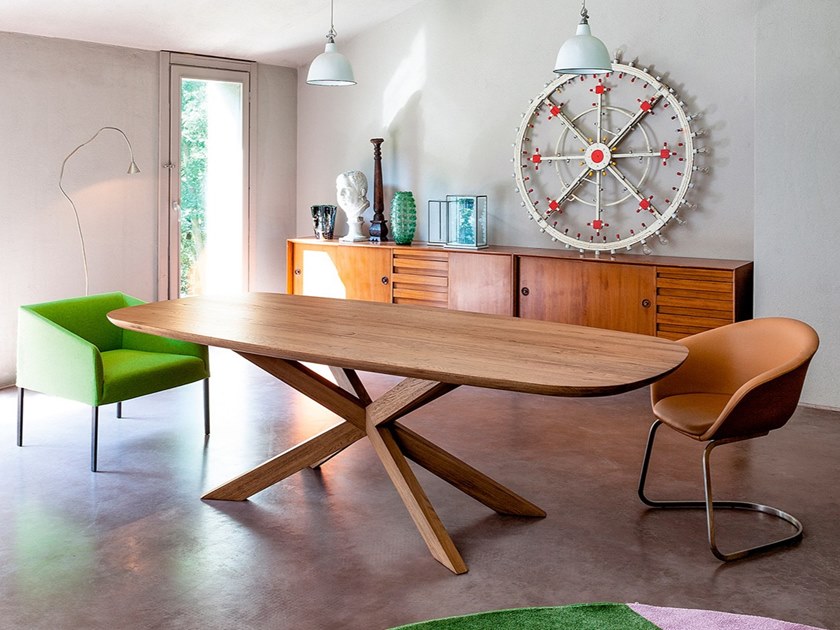 CosmopolitanΤραπέζι με μασίφ δρυς και σιδερένια πόδια σε διάφορα σχήματα και χρώματα.