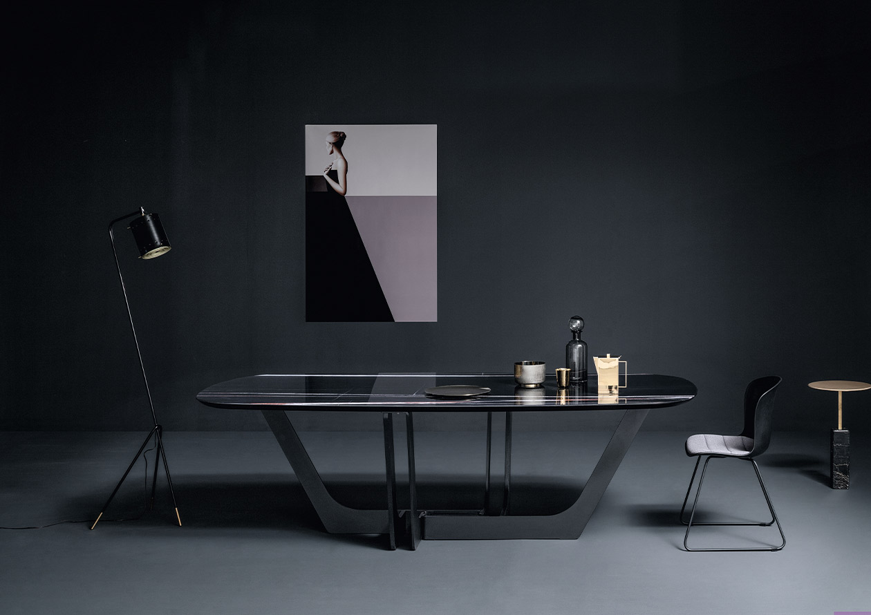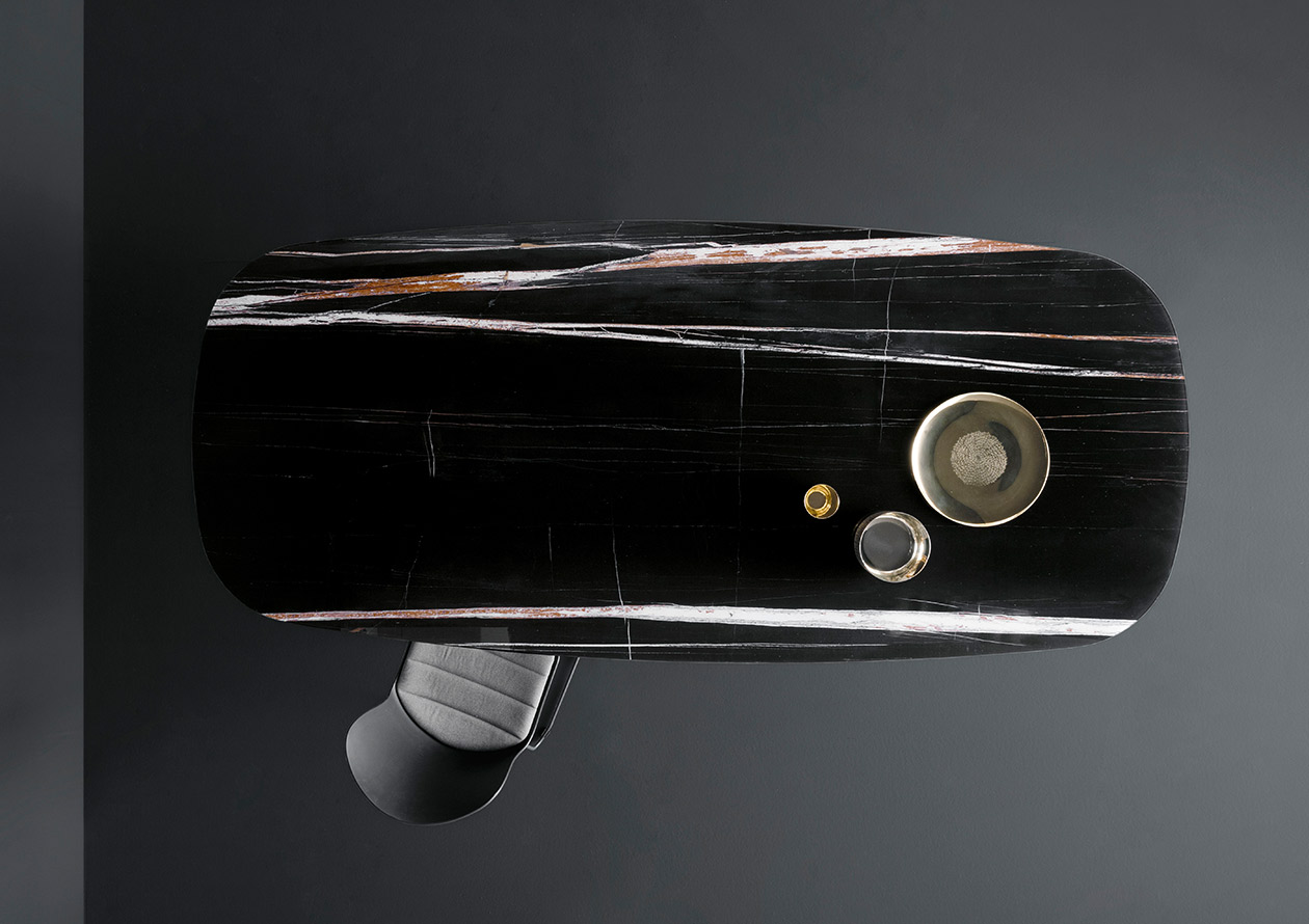 Συμμετρικό, κομψό, λεπτό, οι καμπύλες του Cosmopolitan Top κάνουν το σημαντικό πάχος του συμπαγούς ξύλου βελανιδιάς εξαιρετικά ελαφρύ. Το εξαιρετικά μοντέρνο άκρο σαπουνόφρενου συνοδεύει το βλέμμα στα εξίσου μοντέρνα πόδια σε υλικά που έρχονται σε αντίθεση.