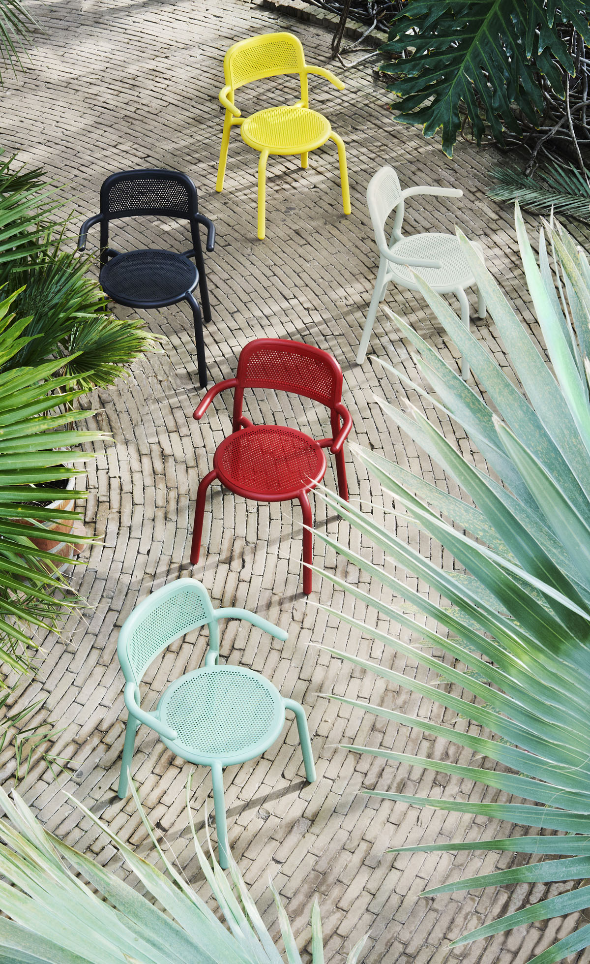 Why is it that while the sky seems to be the limit when it comes to our interiors, garden chairs are often so... well, boring? Get to know Toní Armchair. Rounded and colorful, like the cartoon equivalent of a chair. And with a clear nod to the bistro chair, it feels just like an old friend. So take a seat, sit back and relax. And enjoy your very own garden café. -