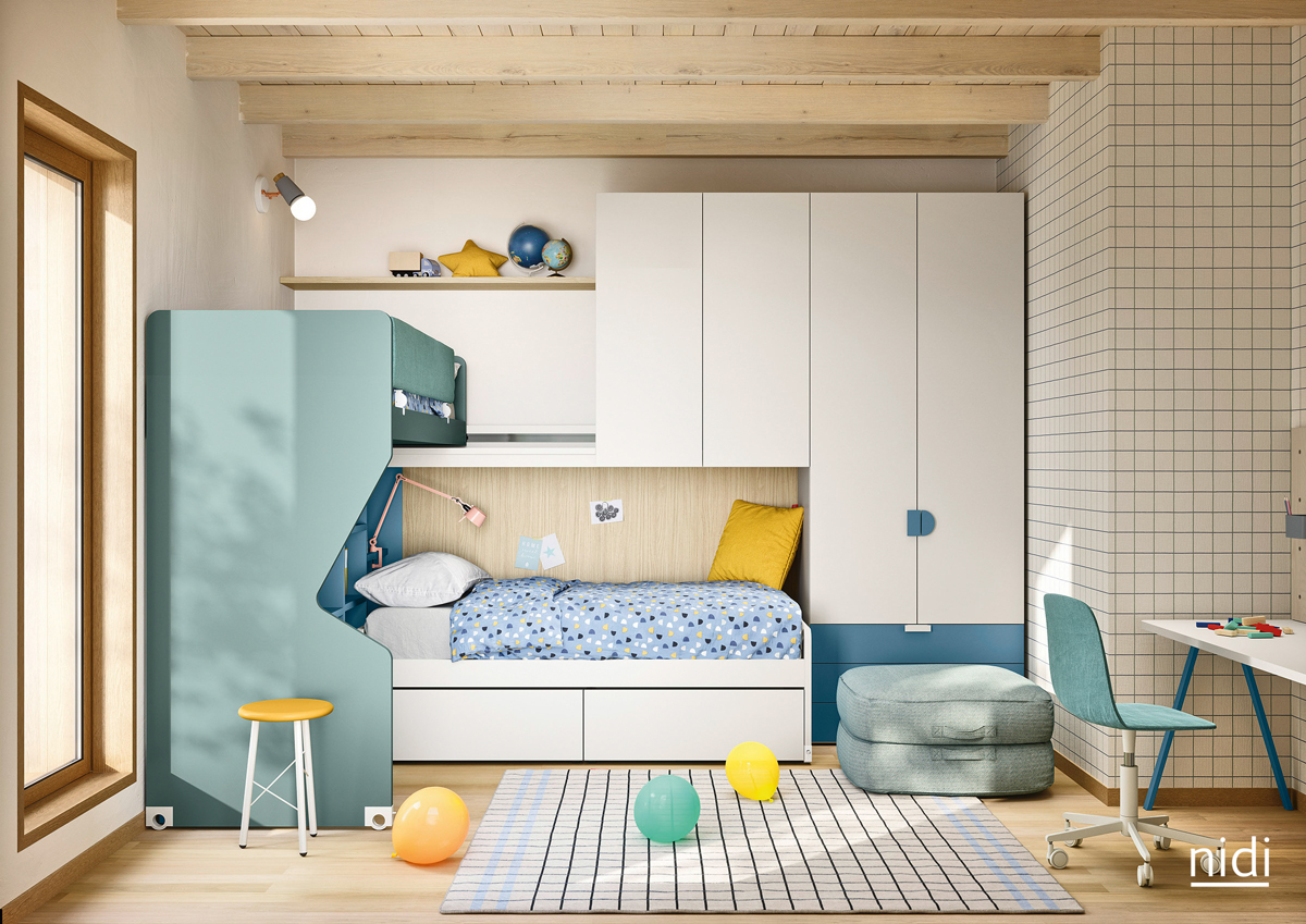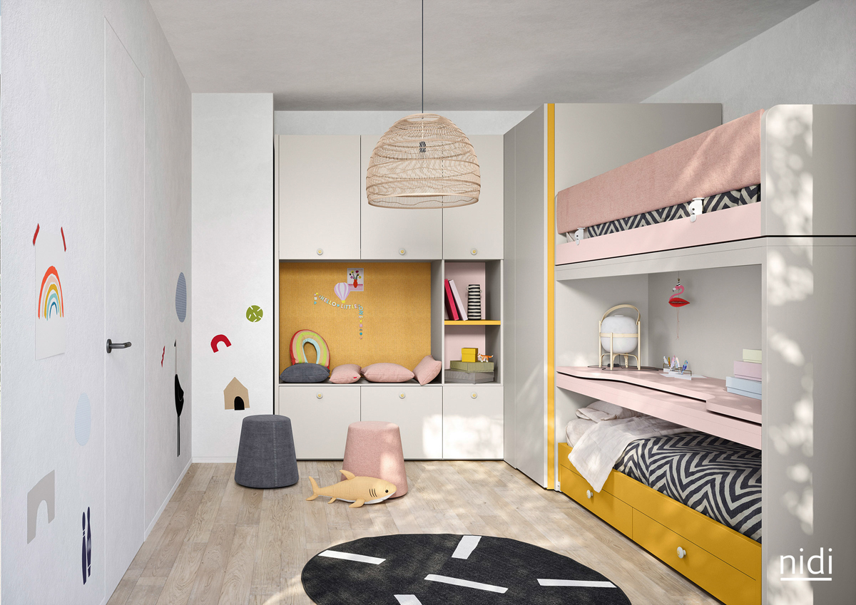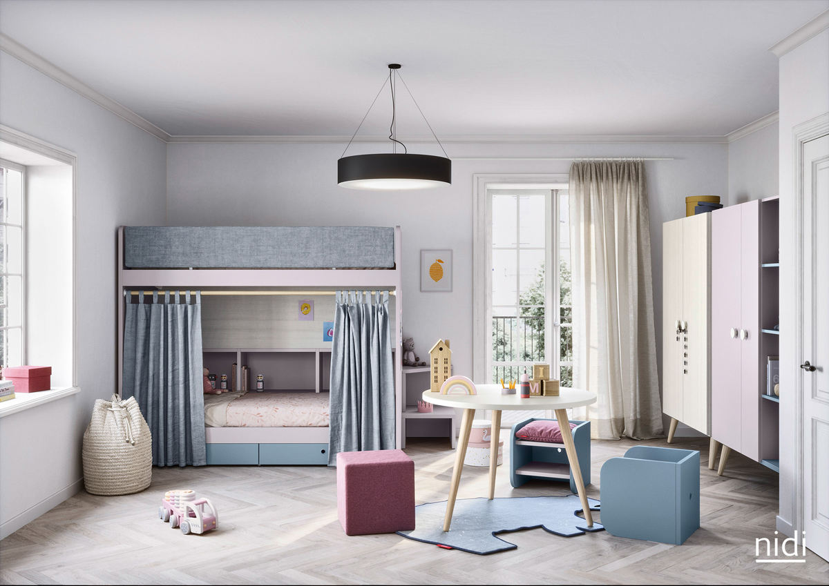 Nidi's history is tied to that of a longstanding company based in the northern Italian province of Treviso: Battistella, a leading name in furniture since 1953 and the first company in Italy to begin producing laminate children's bedroom furniture. A line of furniture designed for the world of children and adolescents, designed with a conscious approach to the design and quality of the various materials, capable of creating innovative, stimulating, personalized rooms where children can grow up and develop their own personality thanks to in use from light forms that are playful and colorful. Nidi attracts the limits of a colorful world built around the needs of children, the best place to play, sleep, learn and cultivate.  VISIT OFFICIAL SITE VISIT OFFICIAL SITE