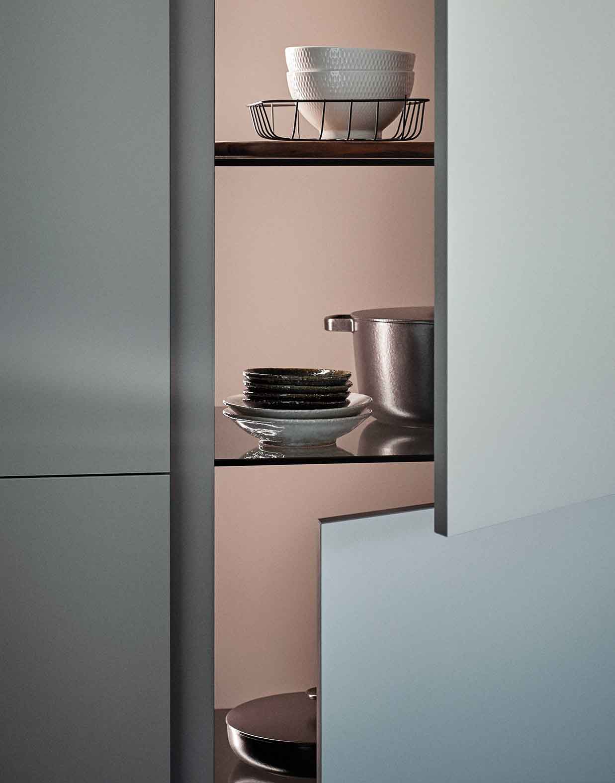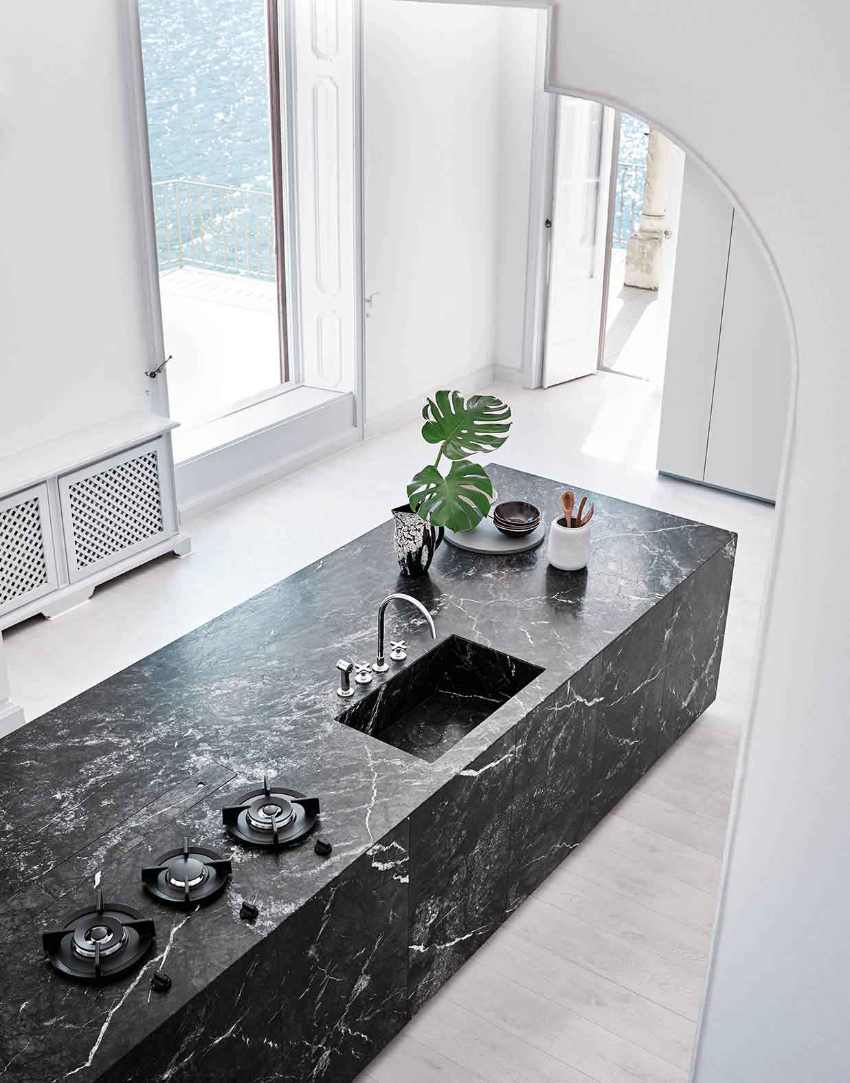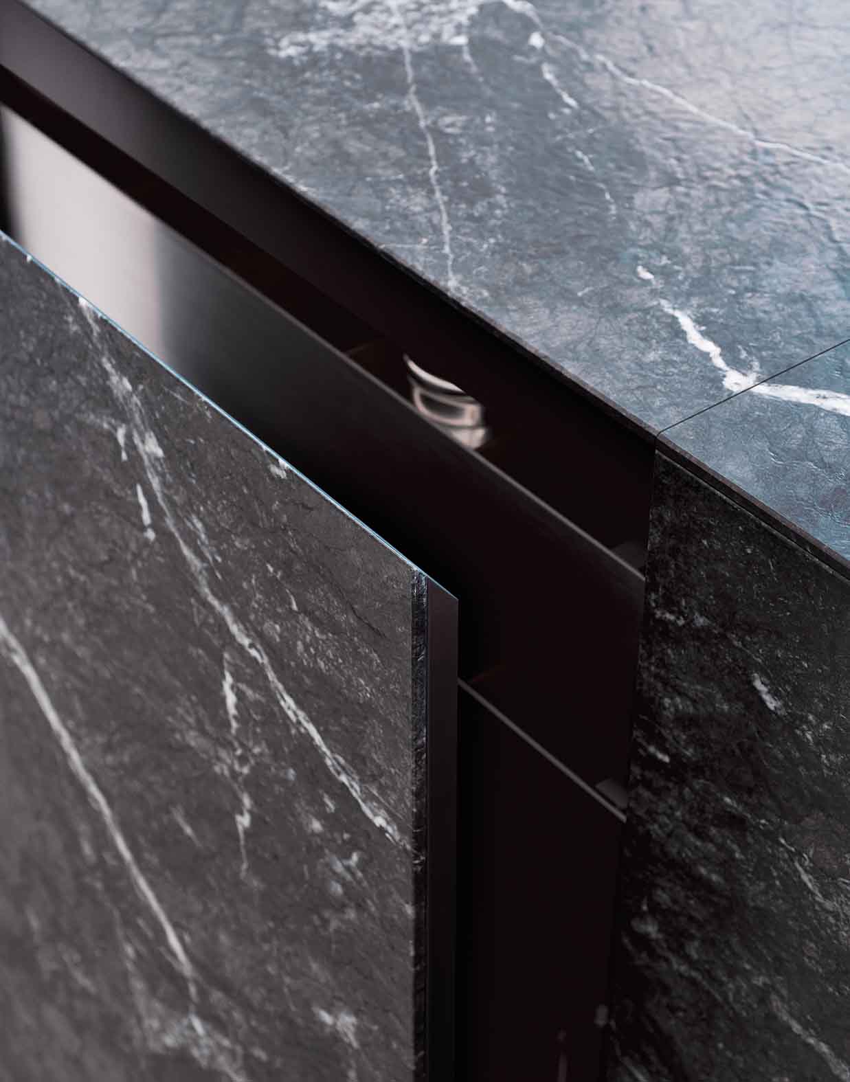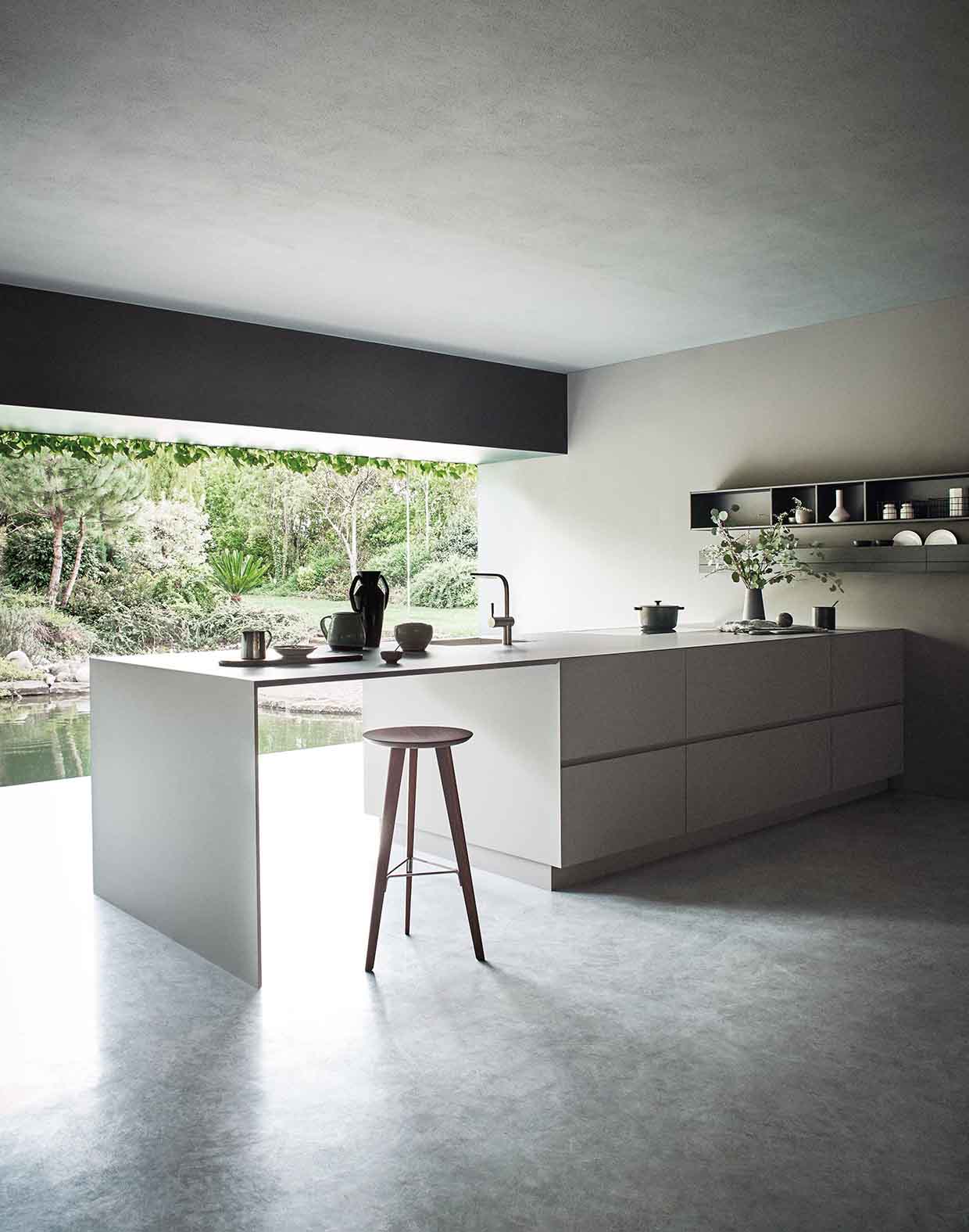 From marble to wood, from lacquer to Fenix laminate, the tactile and colour features emerge in all their glory -