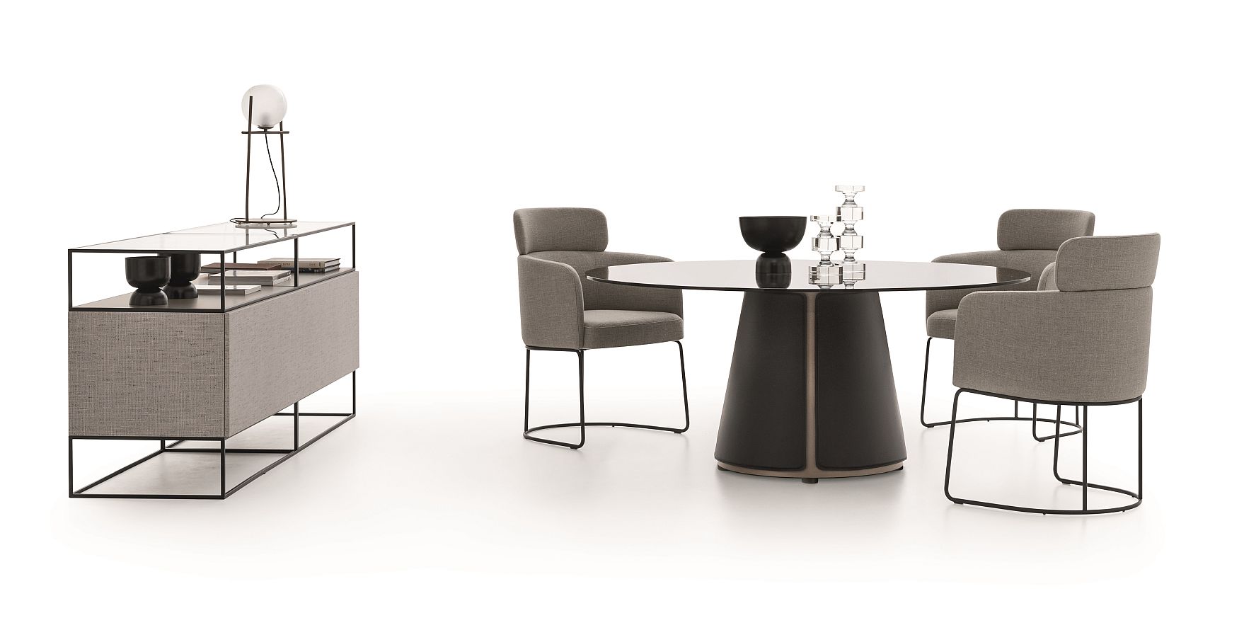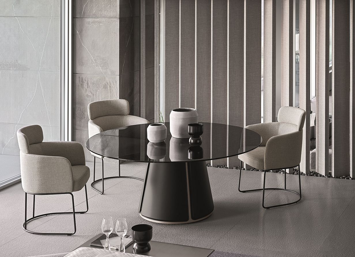 ClaireBeauty comes from a perfect shape: the circle, from which the Clair table and chair originate and by which they are inspired. The formal consistency of this project designs a tidy, relaxing setting full of personality. The load-bearing metal frames also originate from a circular shape, covered with