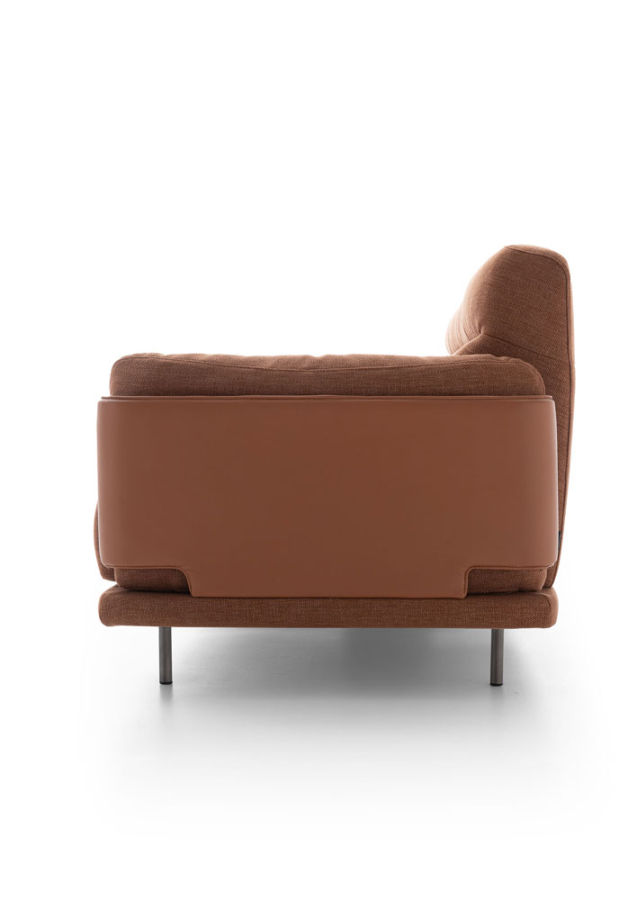 Skin redefines the sofa concept by means of a set of cushions that are contained within the side structure. In fact, the sides become an accessory and new, more comfortable and particularly soft and enveloping seats are a benefit that comes hand-in-hand with the redefinition of this sofa’s structure.